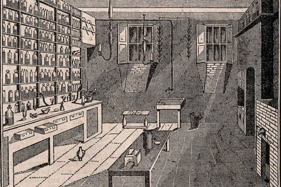 • Header Image: London Mechanics Institute, Southampton Buildings, Holborn: the interior of the laboratory, in a cellar. Wood engraving by William Chester Walker, 1828. Wellcome Library, London